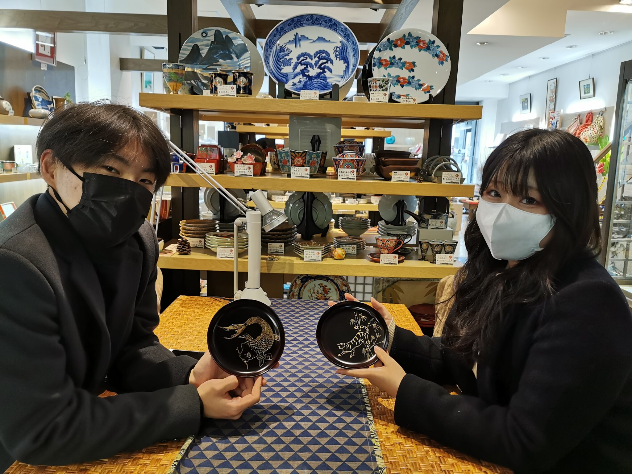 上の作品は竹に虎。二枚目の作品は鯉でしょうか、どちらも今にも動き出しそうな迫力です。お二人とも完璧な出来栄えですね。最後に「楽しかった‼️」とのお言葉を頂けて最高です。