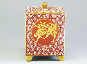 The entire surface is painted in red, and patterns are painted only in gold. It is also called “Kinran” style, as it is characterized by the single-stroke calligraphy of flowers, birds, animals, and insects.