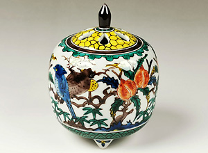 Kutani-yaki remained in a state of limbo for about 100 years until it was restored at the Kasuga-yama Kiln in Kanazawa in 1806 (the 3rd year of Bunka era). Aoki Kigome of Kyoto guided this kiln. The Wakasugi, Yoshidaya, Iidaya, Eiraku, Ono, and Shozo kilns were opened one after another, and all of these kilns were oriented toward industry and the production of daily wares. Each kiln during this period established its own distinctive style, which is the origin of today’s Kutaniyaki.