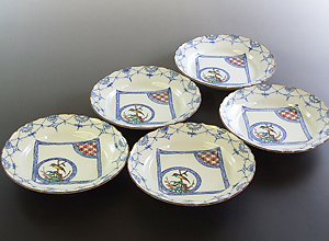 Kutaniyaki A set of 5.5 rounded dishes with a pattern of “Irodori”