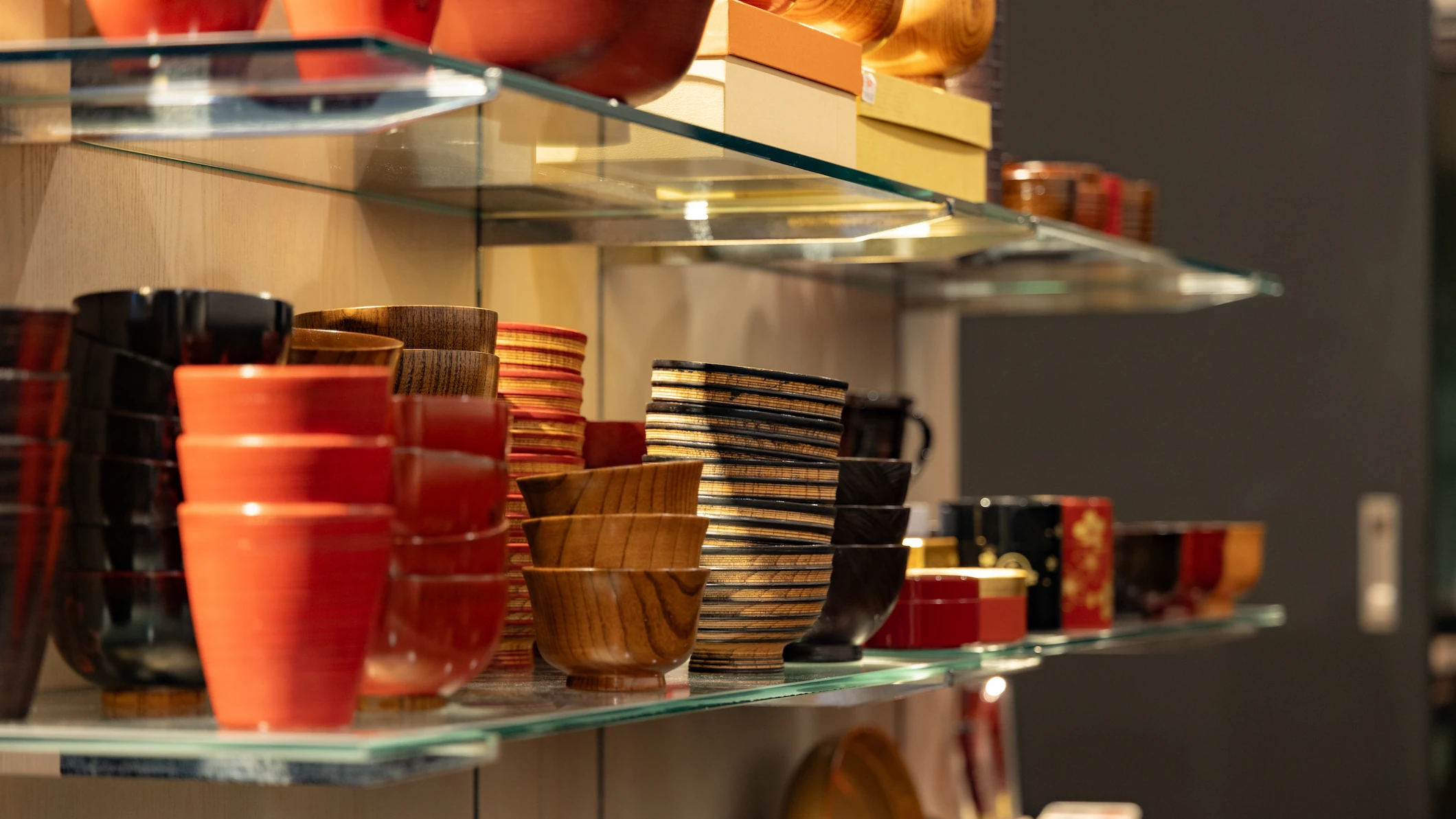 As time went by, the kiln sites moved to other locations, and today, Terai-cho, Nomi City, Ishikawa Prefecture, is the thriving center of Kutani-yaki. The town has a population of about 15,000 and is located in the southern part of the prefecture between the Sea of Japan and the mountains. Terai is nationally known as the home of Kutani ware, which accounts for about 80% of total Kutani ware production. In particular, the Kutani Pottery Village area is lined with pottery wholesalers, and many beautifully colored porcelain pieces are on display in their stores.