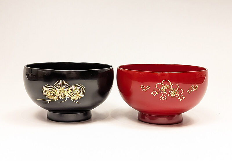 輪島塗 彩丸夫婦椀松梅沈金